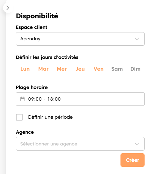👉 Les créneaux par défaut servent de modèle de disponibilité.