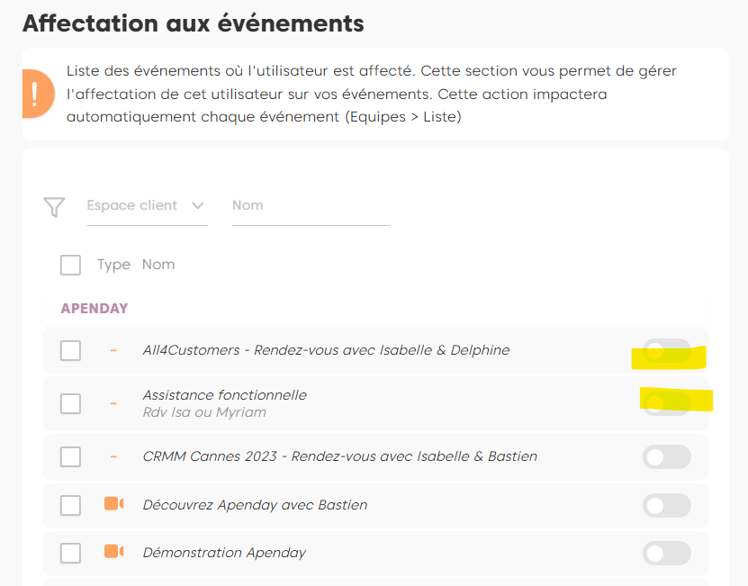 4. Affecter un utilisateur aux événements #