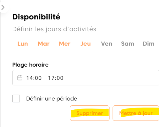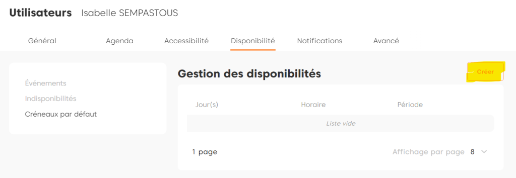 Une fois les disponibilités par défaut définies, vous allez pouvez les associer aux événements souhaités.