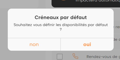 Au clic, on nous propose d’ajouter les créneaux par défaut sur ces événements.