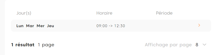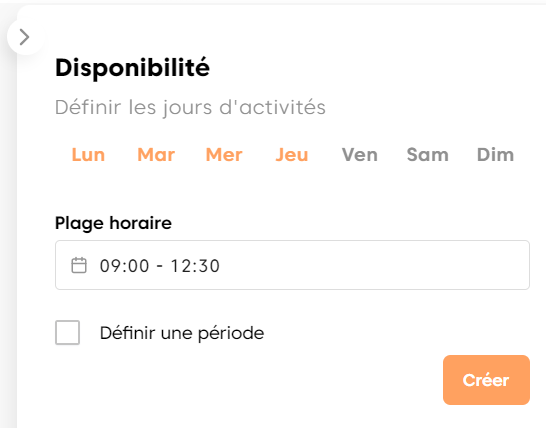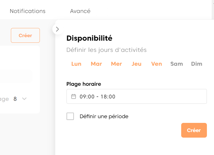 Par défaut, nous proposons tous les jours (du lundi au vendredi) de 9h à 18h. A vous d’ajuster selon vos besoins.