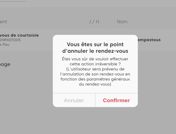 Une étape intermédiaire permet à l’utilisateur de confirmer son choix d’annulation.