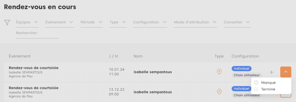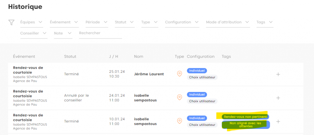 Le rendez-vous est catégorisé dans la section Historique