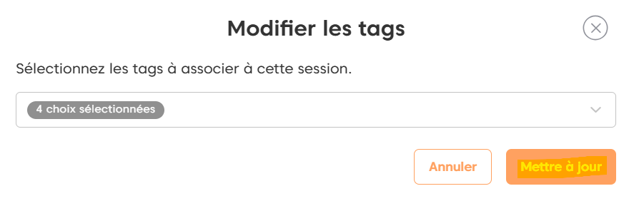 Une fenêtre s’ouvre et c’est ici que vous allez pouvoir choisir les tags à associer à cette nouvelle sessions.