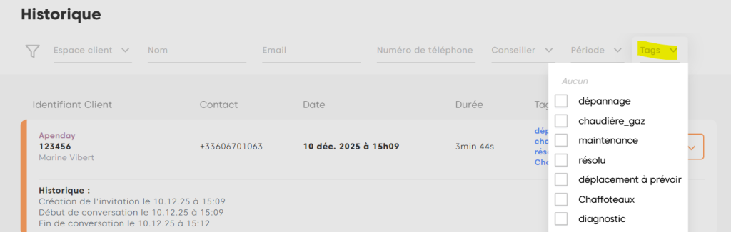 Grâce aux tags, vous pourrez faciliter l’analyse et le suivi de vos sessions en identifiant par exemple les motifs les plus fréquents, les catégories les plus sollicitées ou encore les sessions nécessitant un traitement particulier. C’est important pour optimiser votre organisation et améliorer la qualité de vos services.