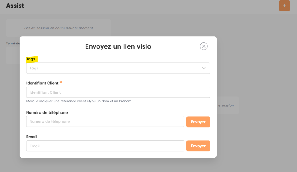 Lorsque vous débutez une session de visio assistance vous avez la possibilité de sélectionner des tags afin de catégoriser le type de visio qui va avoir lieu.