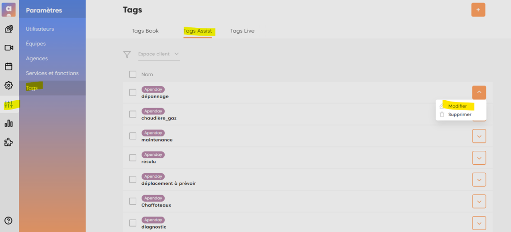 Accès : Paramètres > Tags > Modifier ou supprimer