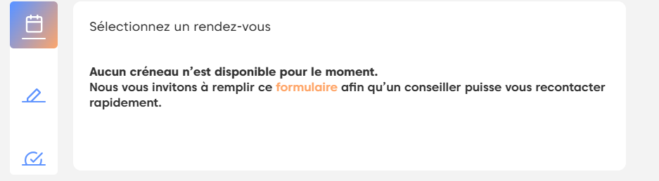 - Message 2 – à afficher en cas d’absence de rendez-vous disponible