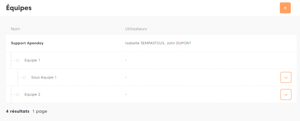 Pour créer de nouvelles équipes et sous équipes, cliquer sur le bouton + en haut à droite.