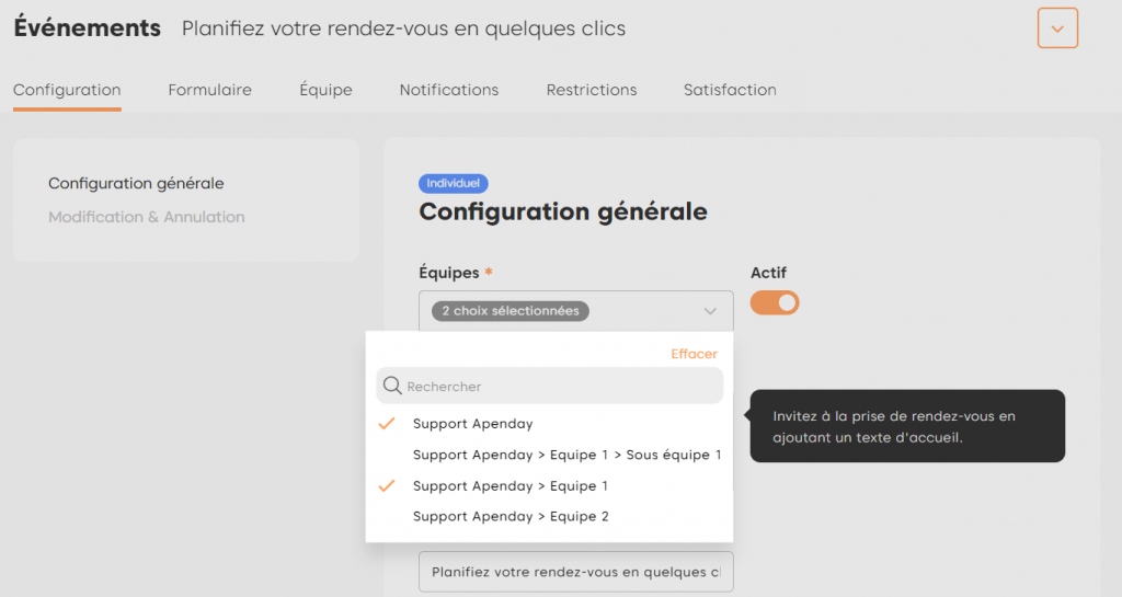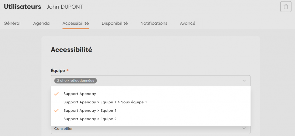 Vous serez amené à créer une équipe pour restreindre la visibilité de vos rendez-vous à un conseiller ou un responsable d’équipe.