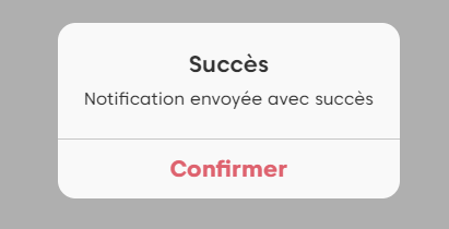Une fois que l’utilisateur confirme, un message de confirmation est affiché