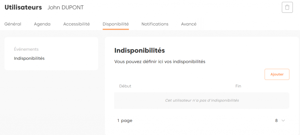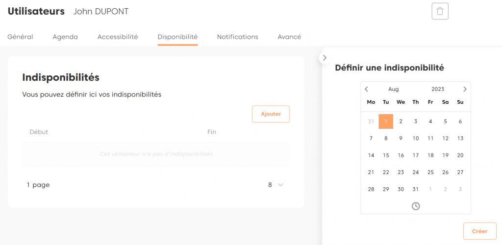 Définissez des périodes d’indisponibilités pour un conseiller. Par exemple, un congé maladie non reporté sur son agenda.