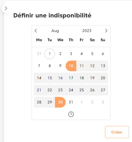Pour déterminer la période, sélectionner la date de début puis la date de fin puis cliquer sur Créer.