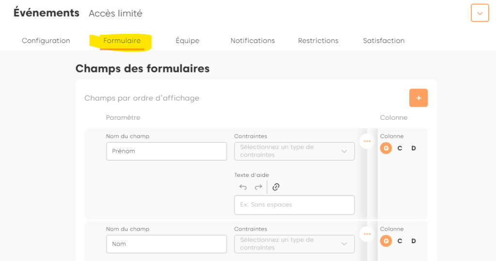 En tant qu’administrateur client et responsable d’équipe (selon vos attributions), vous accédez à une section dédiée à la configuration de vos événements.