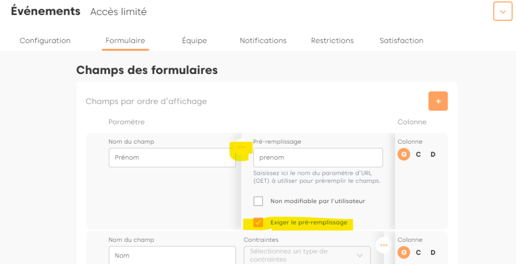 Il faudra alors cocher la case « Exiger le pré-remplissage » pour chacun des champs identifiés.