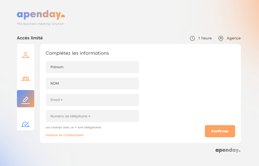 avec les paramètres dans l’URL : https://app.apenday.com/meeting/support-apenday/acces-limite?nom=NOM&prenom=Pr%C3%A9nom