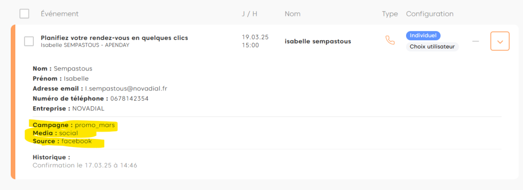 L’utilisation des UTM dans Apenday permet d’améliorer le suivi des campagnes et d’optimiser la prise de rendez-vous en fonction des sources de trafic les plus performantes. En analysant ces données, vous pourrez ajuster vos stratégies marketing et améliorer votre taux de conversion.