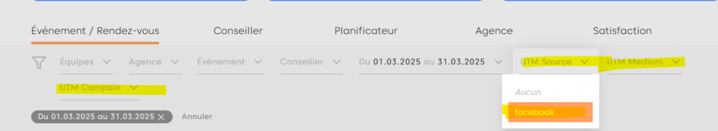 Apenday collecte les UTM pour permettre une analyse dans les rapports de performance. Vous pourrez ainsi :