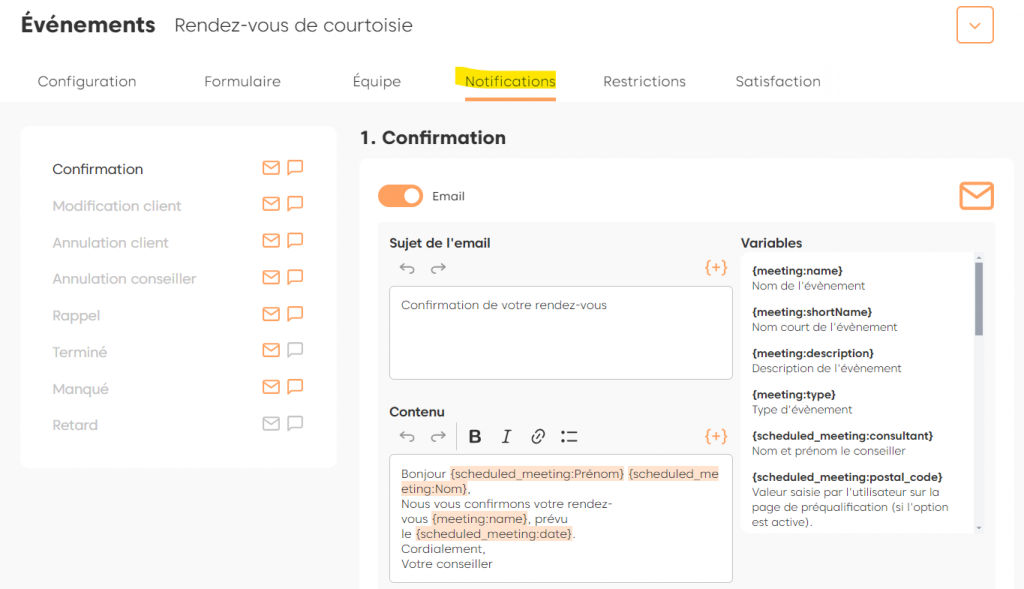 A présent, les conseillers auront la possibilité de notifier leur correspondant depuis leur liste de rendez-vous planifiés et des rendez-vous en cours.