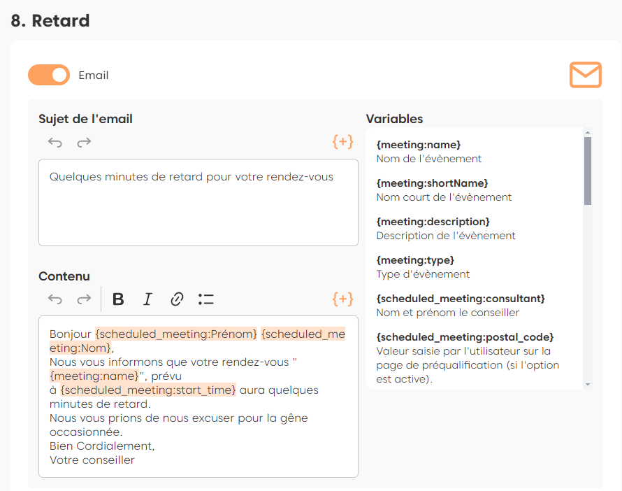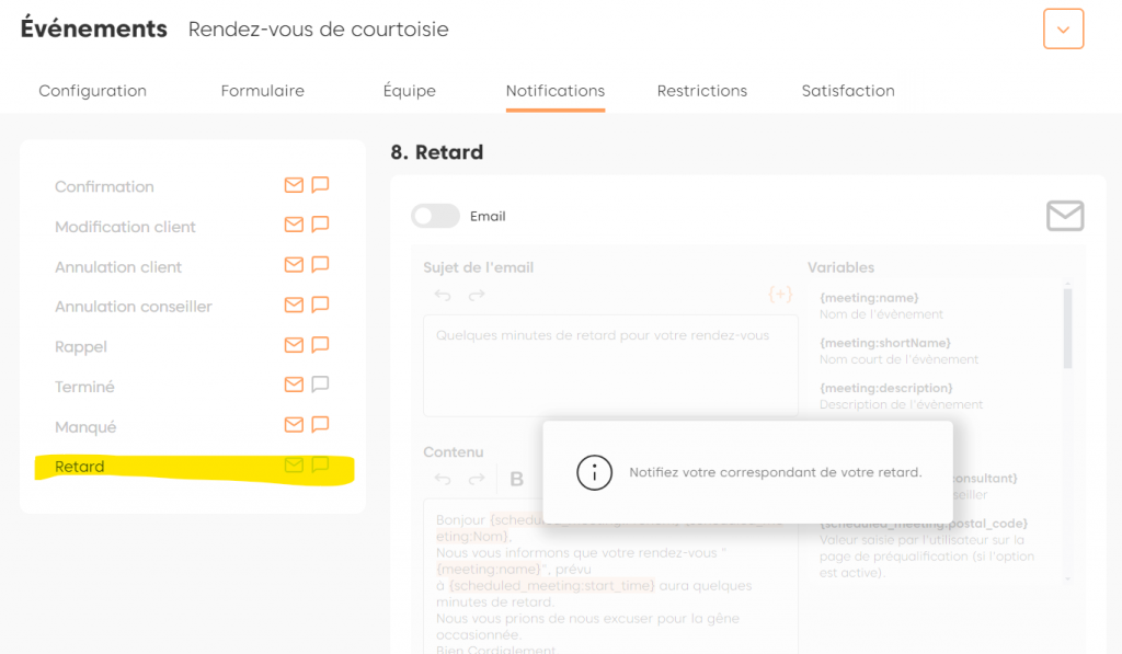En tant qu’administrateur client ou responsable d’équpe, vous avez la possibilité définir des notifications de retard.