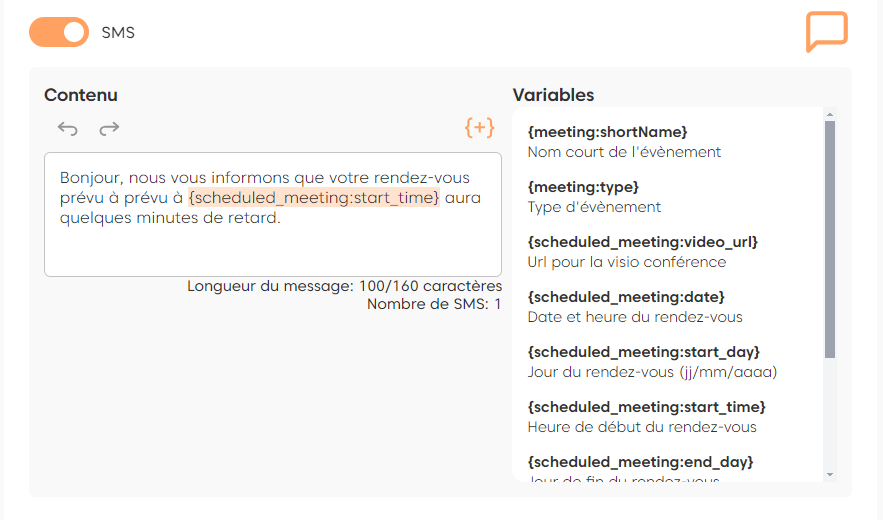 Mail : Pas défaut un contenu vous est proposé. Vous êtes libre de définir le message.