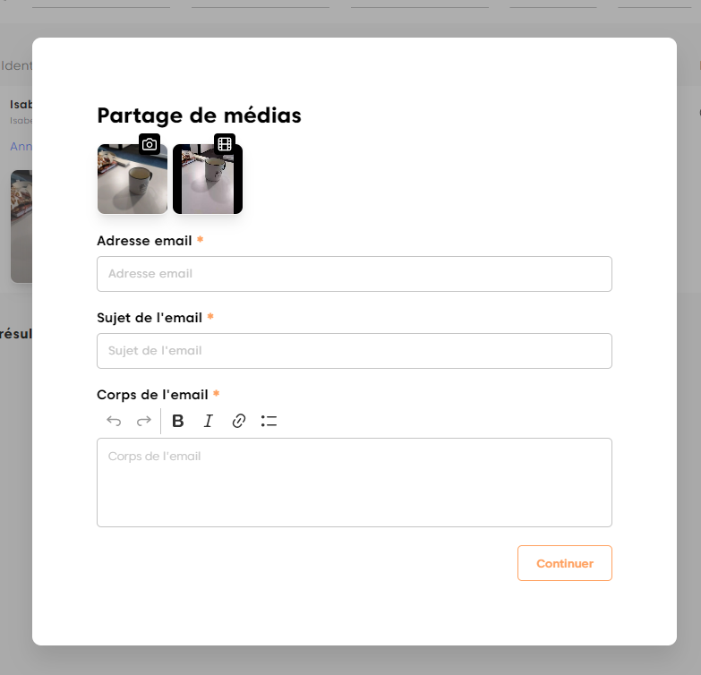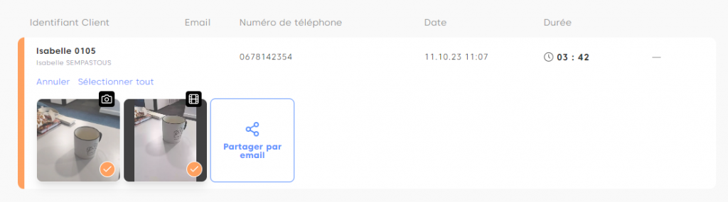 En tant qu’utilisateur du module Assist, vous avez la possibilité de partager, par mail, les médias d’une session.