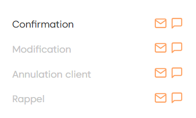 Chacune de ces notifications peut être activée sur les 2 canaux : Mail et SMS.