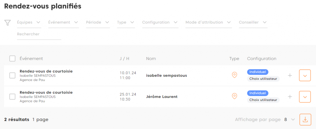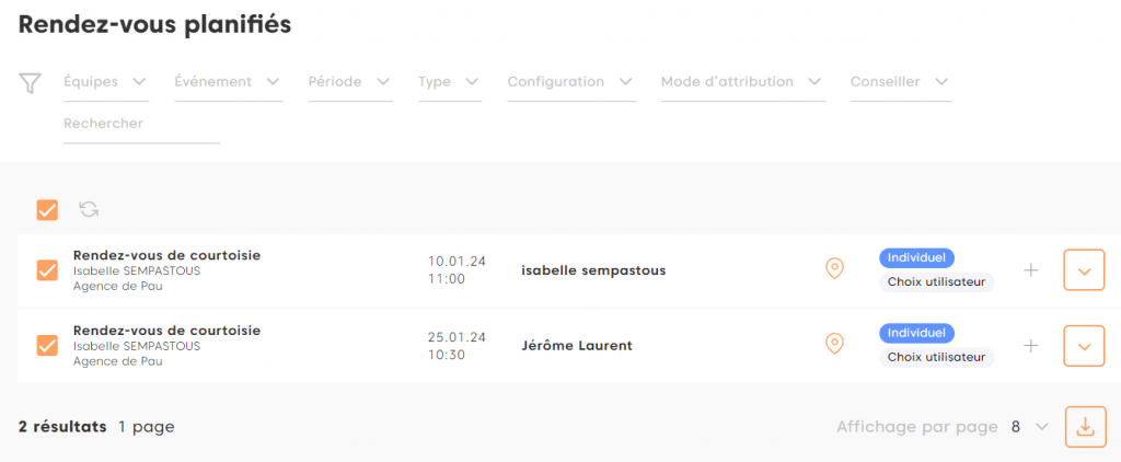 Dans ce cas, l’utilisateur devra repérer les rendez-vous à modifier sur la liste des rendez-vous planifiés.